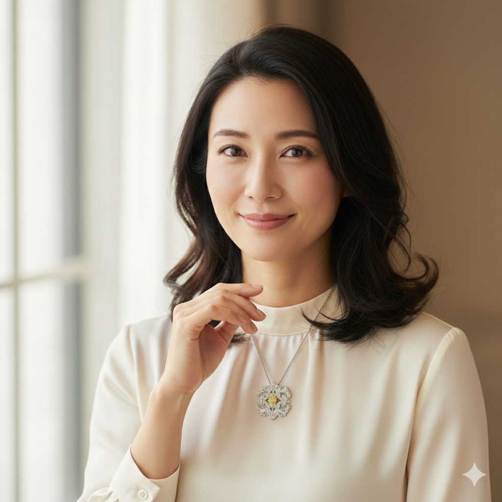 「胸元に灯る、オスマン帝国の栄華。時を越えて輝くファンシーヴィヴィッドイエローの誘惑。」