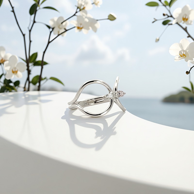「水面に映る光のように、しなやかに。 0.12ctの純粋な煌めきが、あなたの指先で物語を紡ぎ出す。」